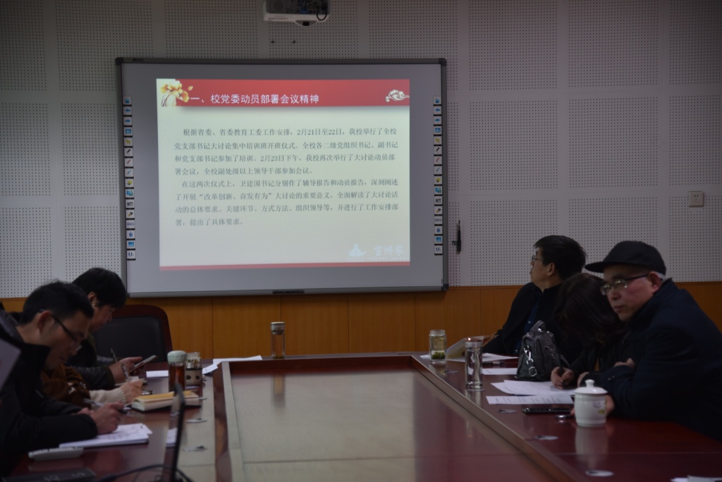 2月24日下午4:30,PP电子在A-508多功能室召开“改革创新、奋发有为”大讨论动员会议。全体教职工和学生党员参加,院党委书记王银主持会议。