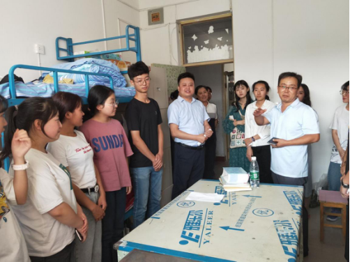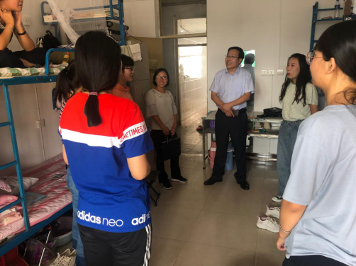 9月7日下午16:00,PP电子游戏网站迎新工作圆满落下帷幕。为了解2019级新生情况,院党委书记王银、院长贾绘泽、院党委副书记孙学虎、副院长赵改萍以及四名新生政治辅导员一同前往新松小区学生公寓看望入住新生,送去学院对新生的慰问与关怀。
