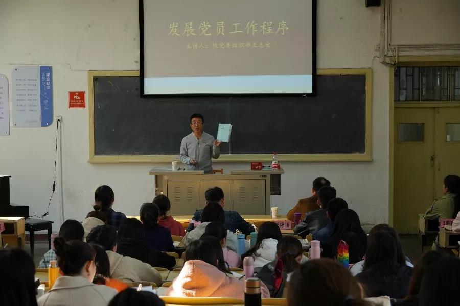 开班仪式结束后,院党委副书记孙学虎讲解了成为中国共产党党员的条件,帮助同学们端正入党态度,了解党员要求,希望同学们未来成为一名合格的共产党员。随后,副院长赵改萍对中国特色社会主义做出深入讲解,她指出:作为新时代青年,要牢记时代使命,明确发展目标,坚定理想信念,厚植家国情怀。最后,段艳老师详细地讲解了全面从严治党的相关内容。