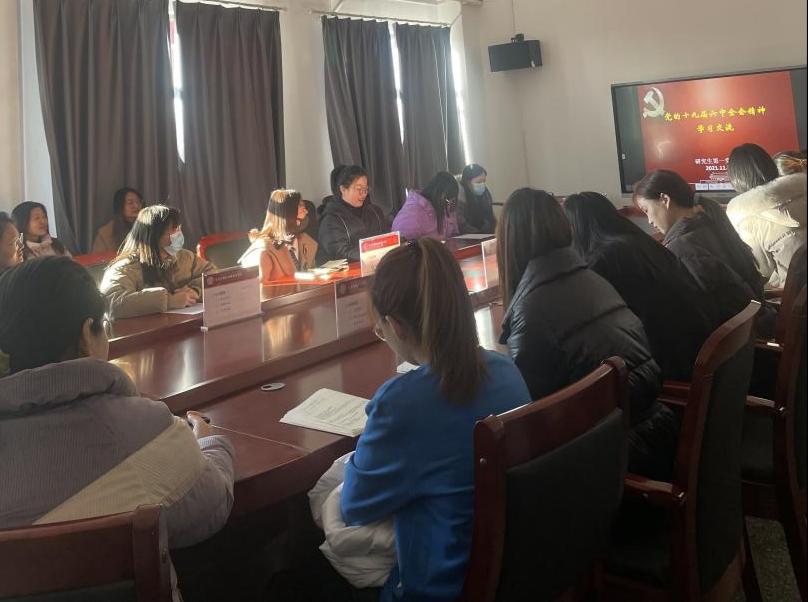 支部书记王艳首先带领大家回顾了党的十九届六中全会的基本情况,集体学习了《中共中央关于党的百年奋斗重大成就和历史经验的决议》。随后,支部党员们就自己的学习和思考,从习近平新时代中国特色社会主义思想的新概括新阐述、党的百年奋斗取得的伟大成就及其意义、当好新时代的答卷人、坚持中国道路的历史经验、习近平新时代中国特色社会主义思想“十个明确”核心内容、坚持党的领导的历史经验、党确立“两个核心”的重大意义等方面进行了交流。