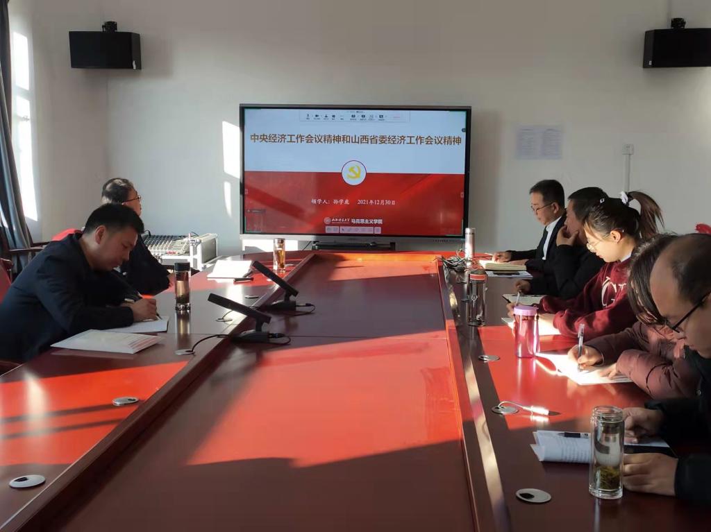 院党委副书记孙学虎结合学院工作及发展实际领学了中央经济工作会议精神和山西省委经济工作会议精神。