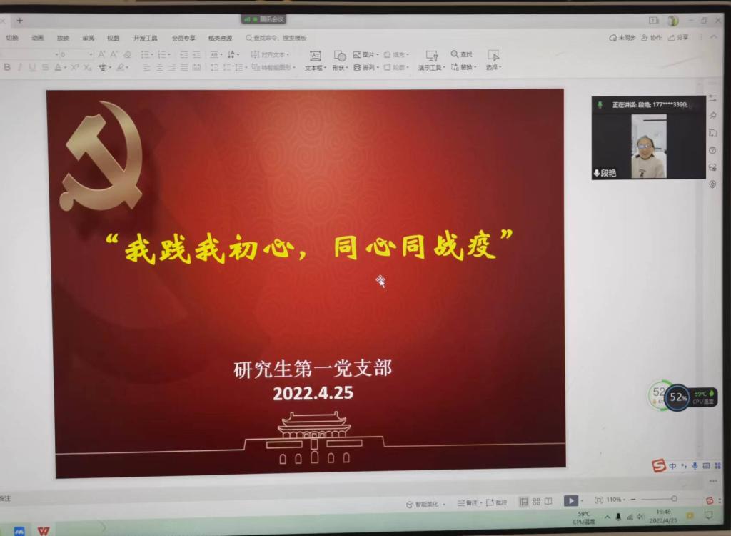 4月25日晚,PP电子游戏网站研究生第一党支部开展“我践我初心,同心同战疫”主题党日活动,红色引擎教工党支部段艳同志应邀参加了此次活动。
