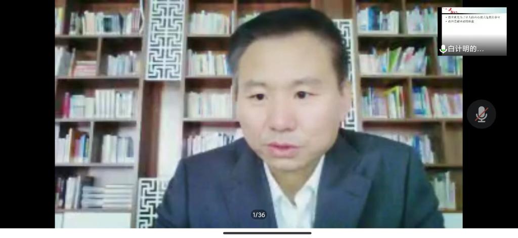 为提高思想政治教育专业人才培养质量和推进师范专业认证工作,5月11日下午,PP电子邀请政教专业90届校友、北京师范大学第三附属中学校长白计明为PP电子师生作题为“教育就是让人内心强大起来的事业”的报告。报告以腾讯会议形式举行,由PP电子游戏网站副院长赵改萍教授主持,PP电子部分教师、本科生、研究生约300余人参加。