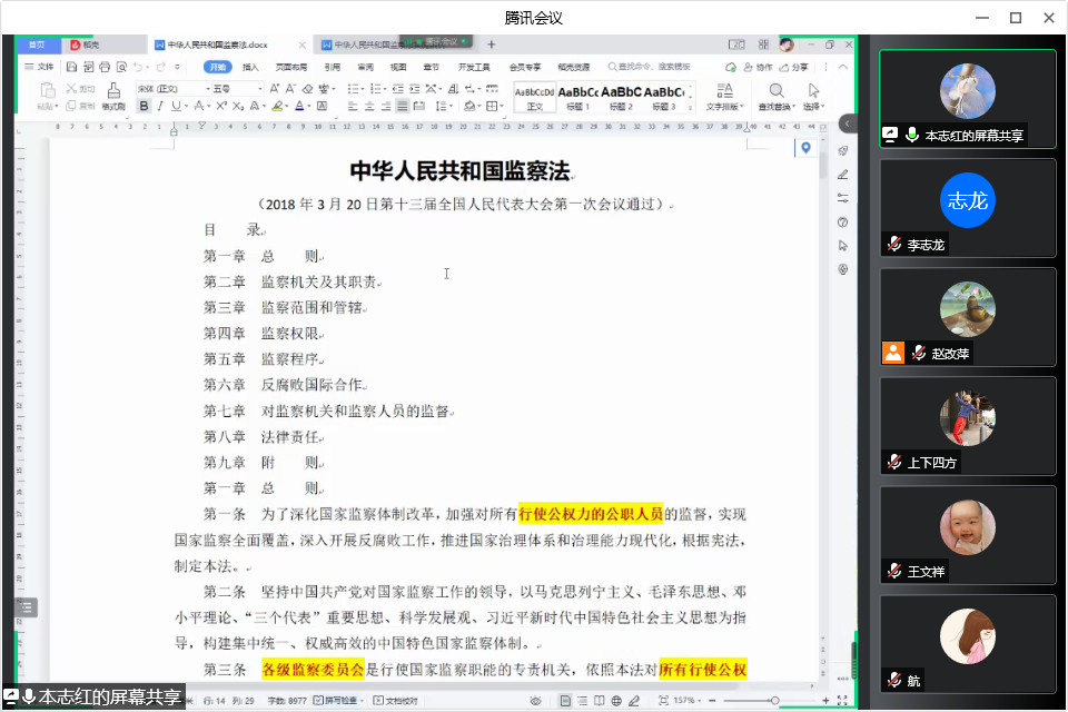 为增强支部党员廉洁自律意识,PP电子“守正创新”教工党支部于2022年5月31日晚7点半在腾讯会议开展“学习监察法实施条例 增强廉洁自律意识”线上主题党日活动。此次主题党日活动由支部书记赵改萍主持,支部全体党员参加。