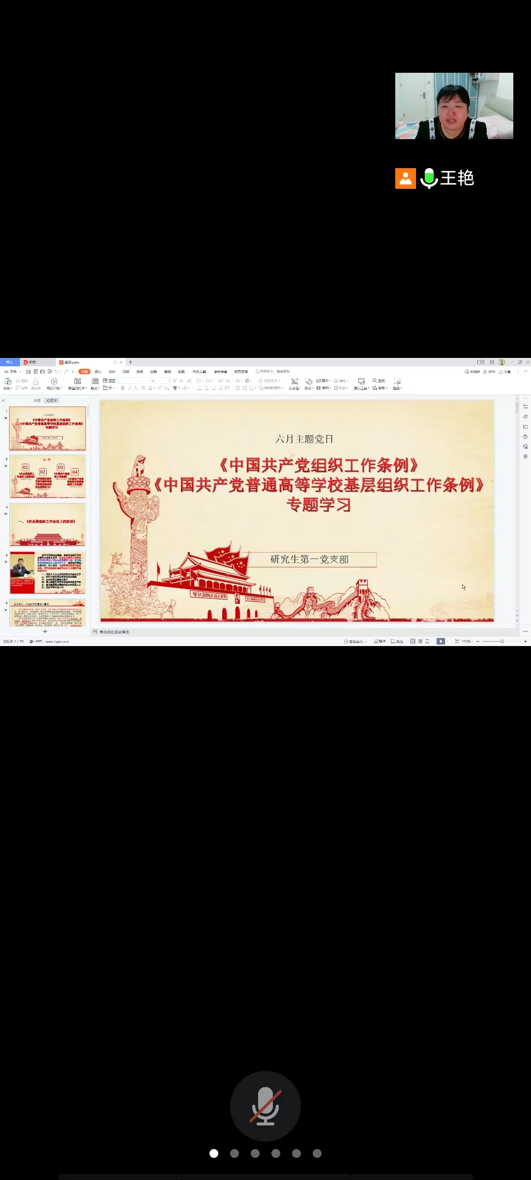 6月21日晚,PP电子游戏网站研究生第一党支部开展主题党日活动,专题学习《中国共产党组织工作条例》和《中国共产党普通高等学校基层组织工作条例》,支部书记领学,全体党员参加学习。
