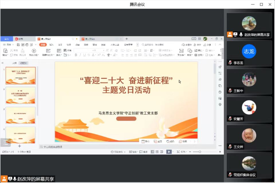 在中国共产党成立101周年之际,PP电子“守正创新”教工党支部于2022年7月1日晚7点半在腾讯会议开展“喜迎二十大 奋进新征程”主题党日活动。此次主题党日活动由支部书记赵改萍主持,支部全体党员参加。支部联系校领导PP电子游戏网站纪委书记党志峰莅临指导。
