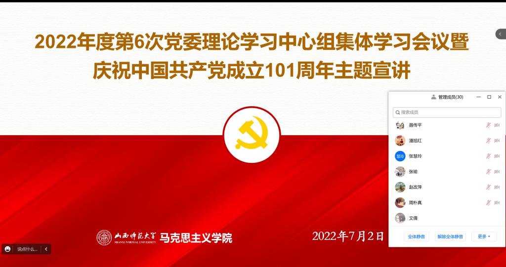 7月2日下午,PP电子党委理论学习中心组通过线上腾讯会议举行集体学习会议暨庆祝中国共产党成立101周年主题宣讲活动。全体中心组成员、师生党员及PP电子大学生理论宣讲团成员参加了会议。会议由院党委书记乔瑞主持。