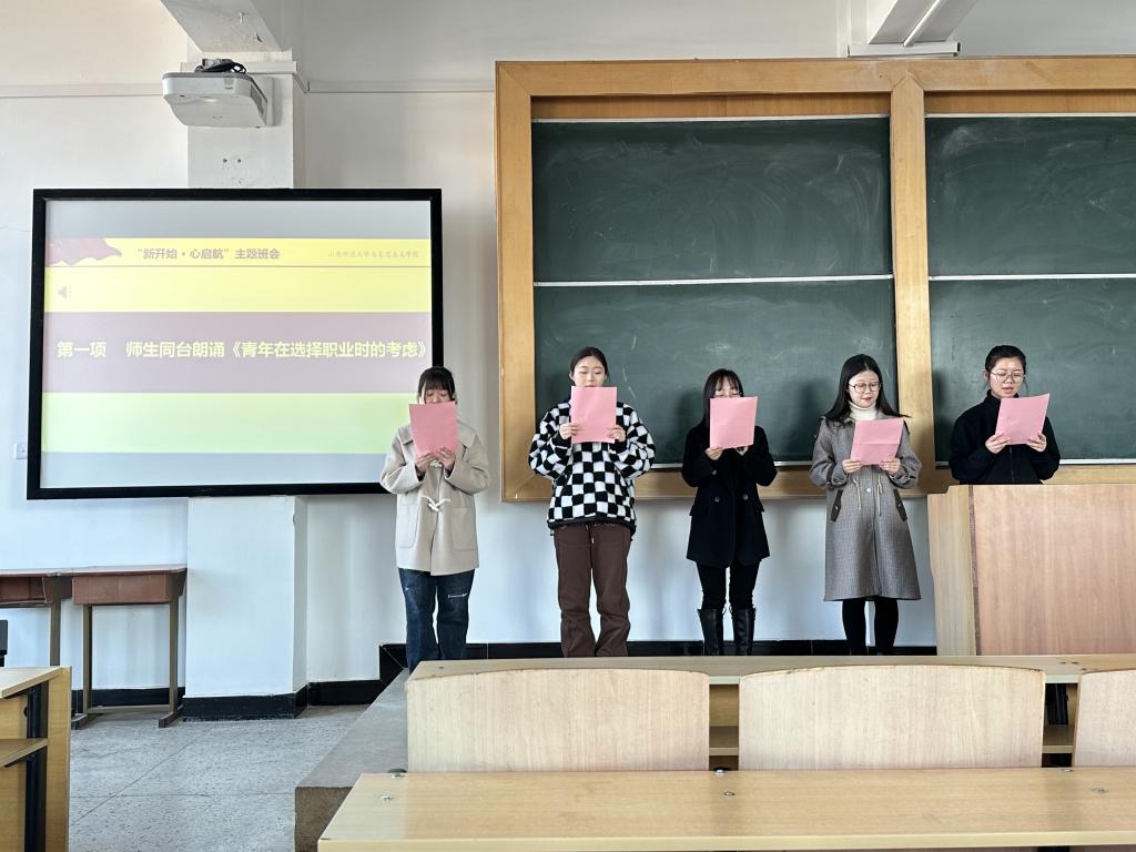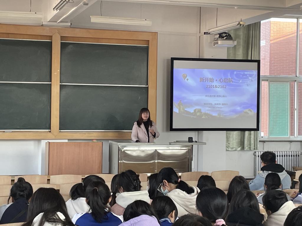 为全面贯彻落实党的教育方针,落实立德树人的根本任务,引领学生持续深入学习党的二十大精神,坚定理想信念,树立远大志向,激励学生以全新的面貌迎接新学期的到来,3月6日上午,2101班&2102班在3410教室结对举行“新开始·心启航”主题班会,特邀班级联系领导学院副院长赵改萍教授出席会议,2101班和2102班全体学生参加会议。这也是贯彻落实处级以上领导干部联系班级制度,既“师生面对面·党心连青心”和“师生面对面·献礼二十大”之后的“师生面对面·疏导心贴心”系列的首场活动。会议由2101班辅导员安慧芳老师主持。