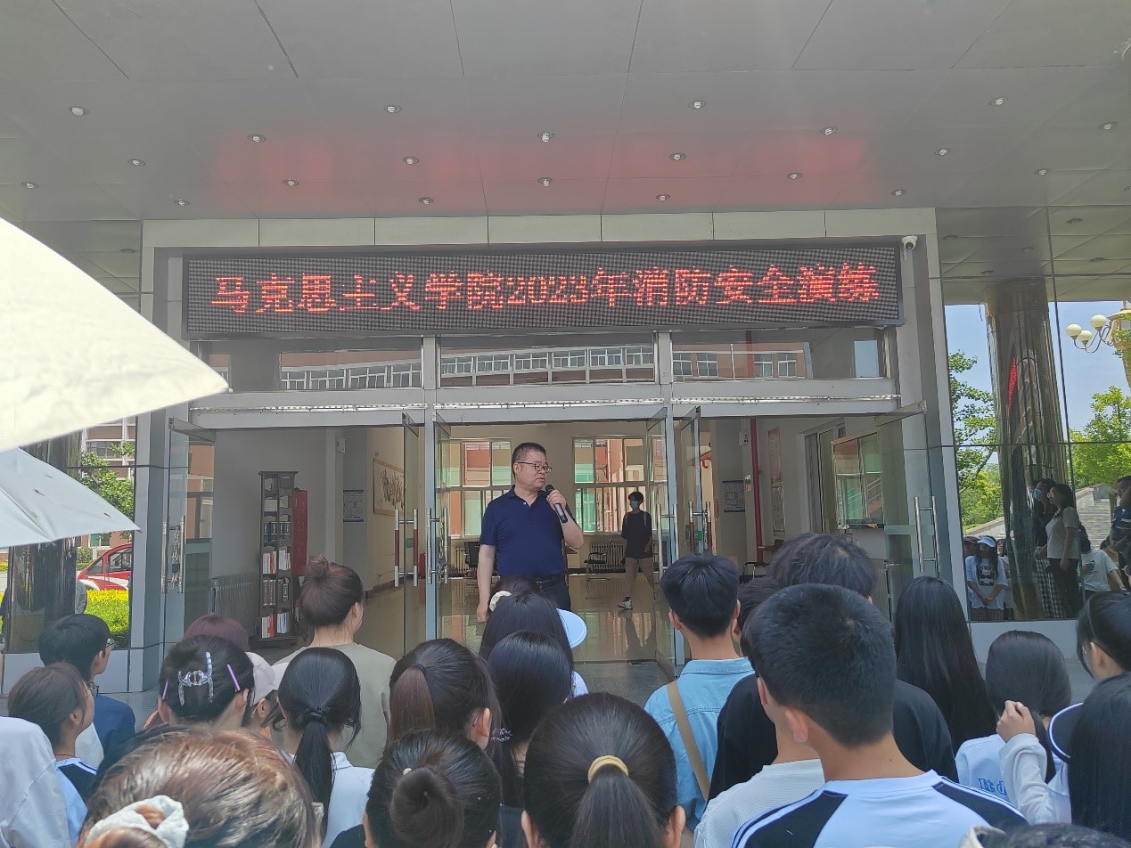 2023年5月18日,PP电子游戏网站在5号教学楼前举行消防安全疏散演练,全体大一学生及辅导员参加活动,特邀保卫处消防科科长张威及相关部门负责人参加活动。