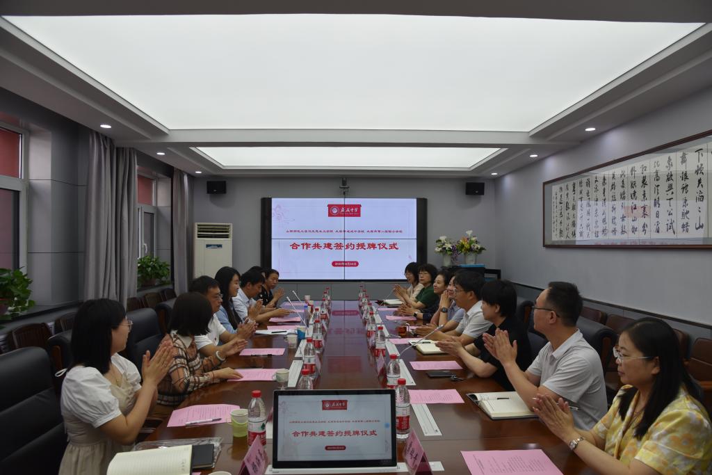 充分交流后,学院与太原市成成中学校、太原市第二实验小学分别签署了合作共建协议。党委书记乔瑞、党委副书记杜辉、副院长赵秀芳分别代表PP电子游戏网站授予太原市成成中学校、太原市第二实验小学“大中小学思政课一体化建设共建基地”“志愿服务基地” “教育实习与研究基地”牌匾。