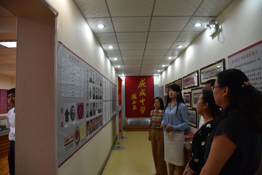 签约仪式前,PP电子领导老师与太原市第二实验小学校长张晓红一行,在太原市成成中学党委办公室主任靳晓东和副校长刘琦的讲解下,共同参观了成成中学校史馆和思政堂,感悟成成中学近百年红色校史,砥砺红色信仰,学习思政工作经验。