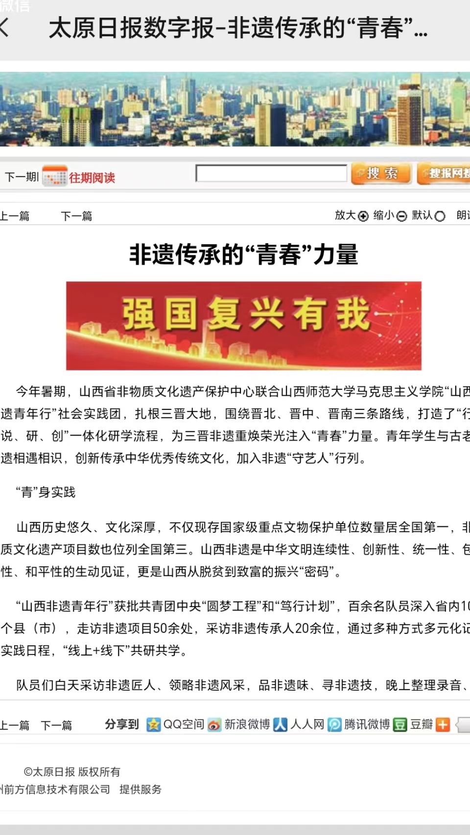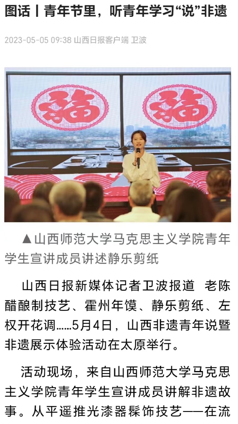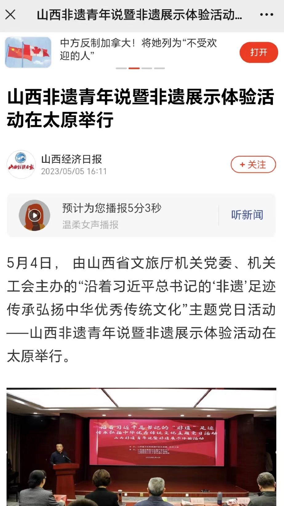 党的十八大以来,习近平总书记曾多次到山西考察调研,对文化传承作出重要指示、寄予殷切期望。为贯彻落实习近平总书记视察山西重要讲话精神,引导青年学生增强文化传承与创新的信心和决心,两年来,PP电子游戏网站“山西非遗青年行”社会实践团队聚焦山西非遗,在山西省非物质文化遗产保护中心的大力支持下,开展了“山西非遗青年行+山西非遗青年说+山西非遗青年创+山西非遗青年研”系列活动,打造了“行—说—创—研”一体化研学流程,获得人民论坛网、人民日报视频客户端、人民网、中国青年报、文旅中国、山西省文旅厅、河南省文旅厅、山西日报山西青年报、山西农民报、中国大学生在线、高校辅导员工作室等多家权威机构和媒体的广泛报道。