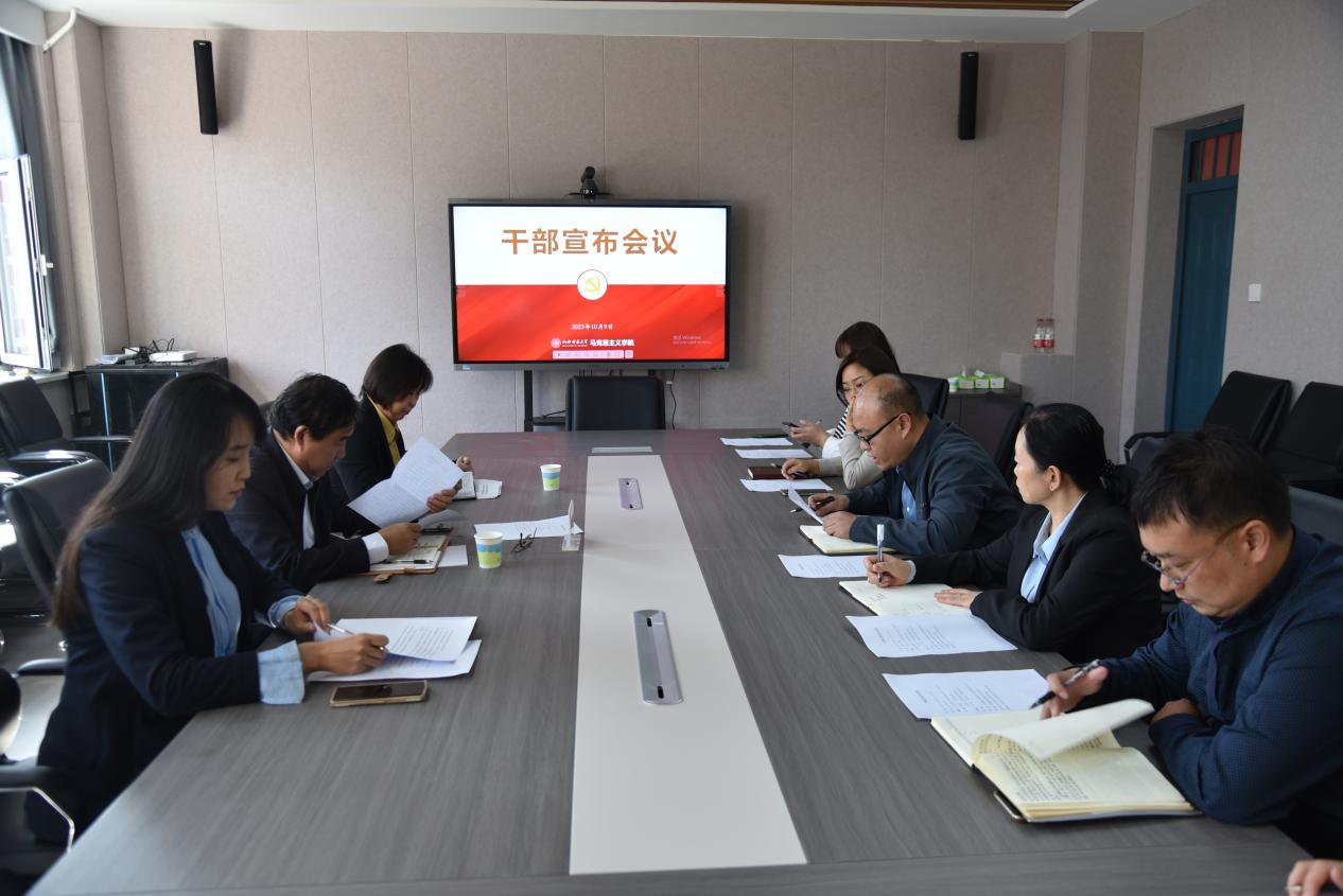 2023年10月9日下午,PP电子在南区1506会议室召开干部宣布会议。校党委副书记薛勇民、校党委组织部副部长李企婷出席会议,学院党政领导班子成员、中层干部参加会议。会议由院党委书记乔瑞主持。