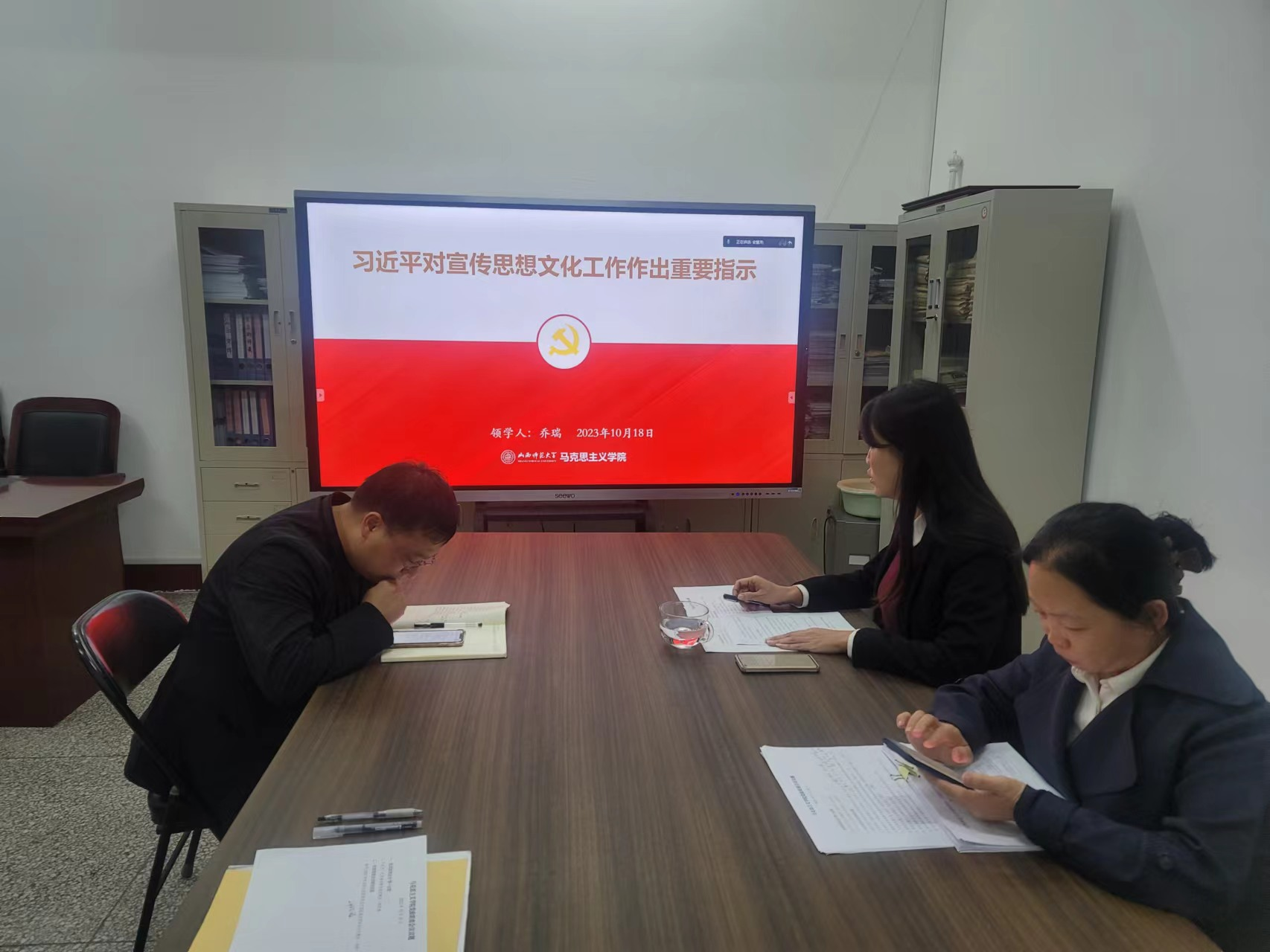 与会人员结合工作实际开展交流研讨,纷纷表示,要以习近平文化思想为指导,站在坚定拥护“两个确立”、坚决做到“两个维护”的政治高度,切实增强责任感、使命感,不断提升工作能力本领,提高工作质量效能,唱响师大马院“好声音”,讲好山西文化“好故事” ,擦亮三晋文化“金名片” ,为奋力开创新时代宣传思想文化工作新局面作出贡献。