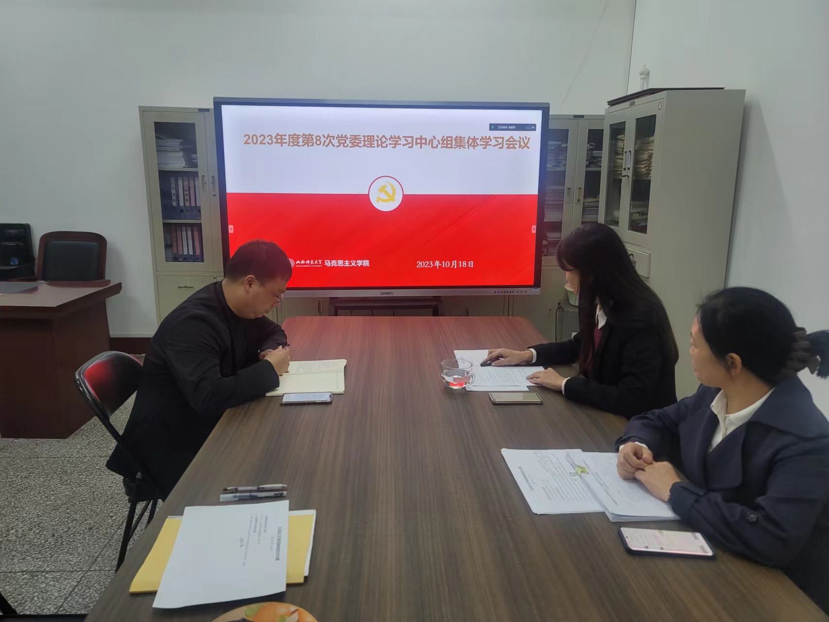 10月18日晚,PP电子党委理论学习中心组在1号楼502办公室召开集中学习会议,线上线下同步进行。全体中心组成员参加了会议,会议由院党委书记乔瑞主持。