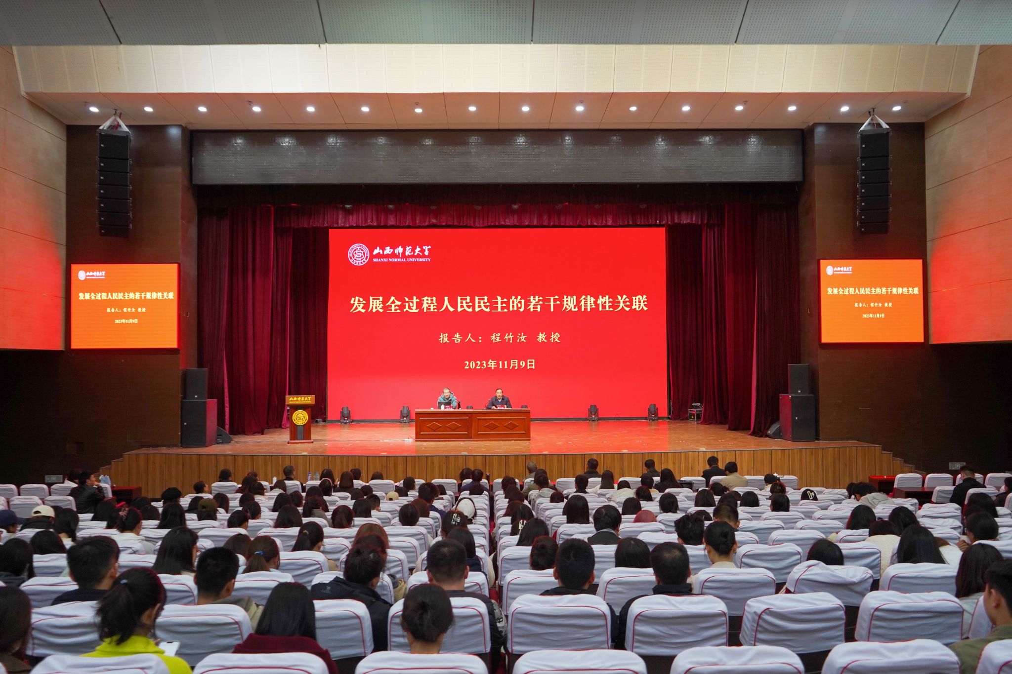 11月9日下午,PP电子杰出校友、上海交通大学长聘教授、博士生导师程竹汝教授应邀在学校南校区科学会堂报告厅作了关于“发展全过程人民民主的若干规律性关联”的专题报告。报告会由校党委副书记薛勇民主持,PP电子游戏网站、社会学与法学学院相关教师和学生聆听了报告。