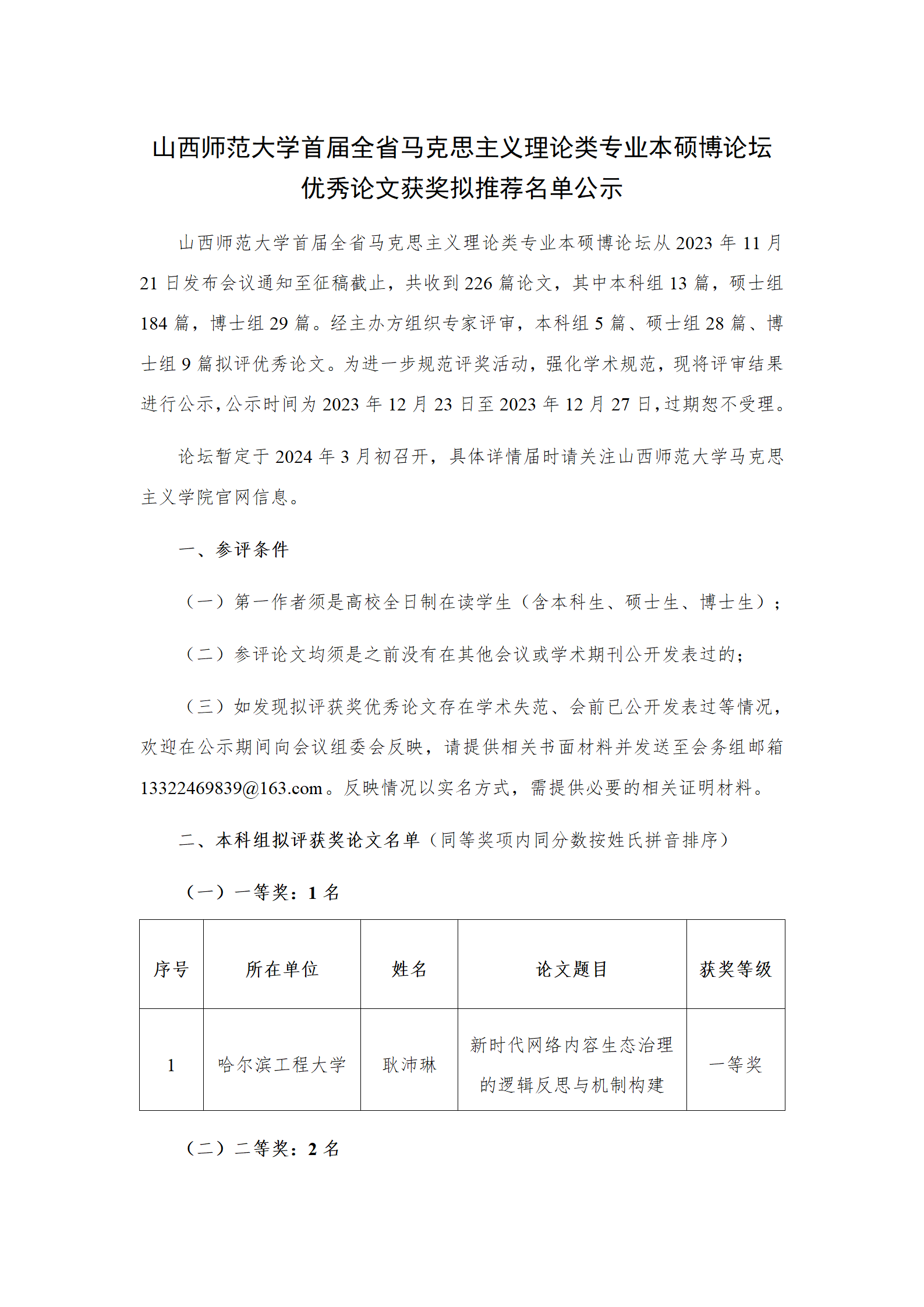 PP电子游戏网站首届全省马克思主义理论类专业本硕博论坛优秀论文获奖拟推荐名单公示