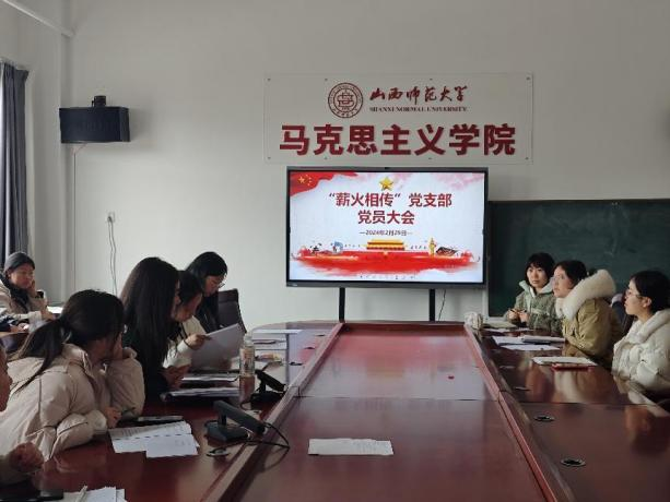 2024年2月29日下午,PP电子游戏网站“薪火相传”党支部召开预备党员转正大会和主题党日活动。本次会议采取线上线下相结合的形式进行,由支部书记张玉婷主持,全体党员同志共同参加。