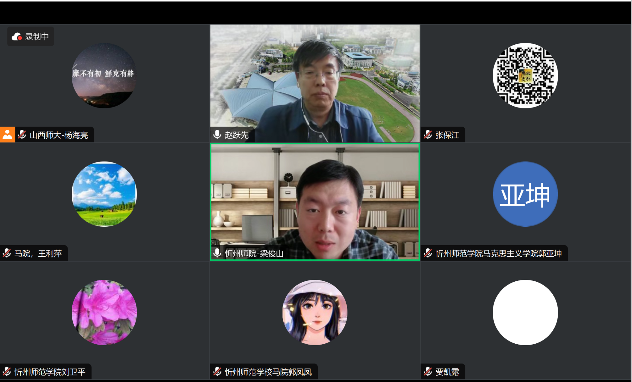 4月19日下午,PP电子游戏网站、忻州师范学院思想政治教育虚拟教研室举办线上教研活动。此次活动邀请PP电子游戏网站教授、博士生导师赵跃先老师作题为“如何提升思政课教师的科研能力”的学术讲座。PP电子副院长(挂职)杨海亮介绍了思想政治教育虚拟教研室协同共建情况,学术讲座由忻州师范学院PP电子游戏网站(筹)副院长梁俊山主持,两所高校思想政治教育专业教师聆听了学术报告。