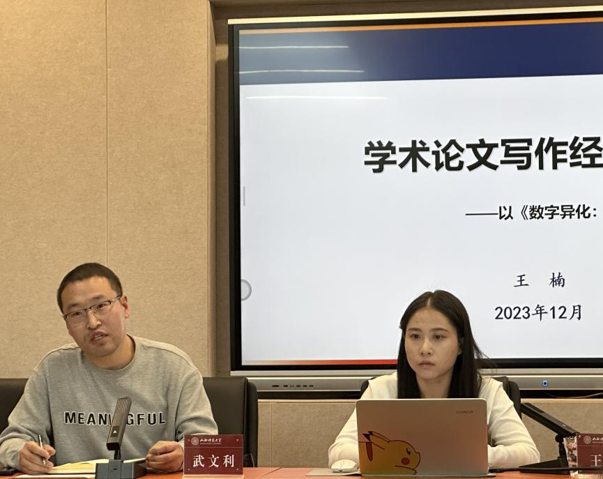 2023年12月8日下午2点45分,PP电子游戏网站在1505报告室举行博士论坛,本次论坛由PP电子游戏网站王楠老师主讲,武文利老师点评,PP电子2023级研究生参加了本次论坛。