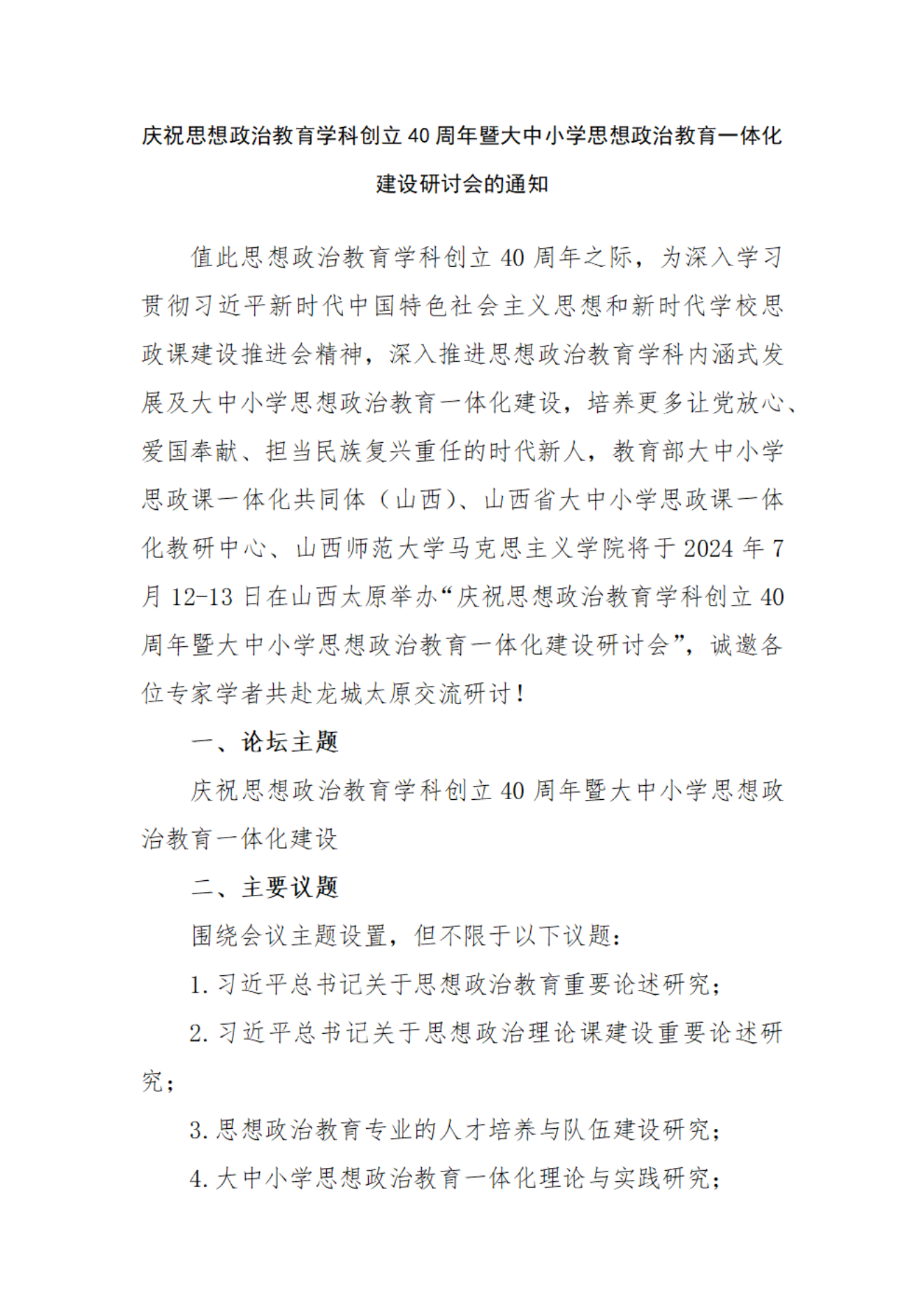 庆祝思想政治教育学科创立40周年暨大中小学思想政治教育一体化建设研讨会的通知
