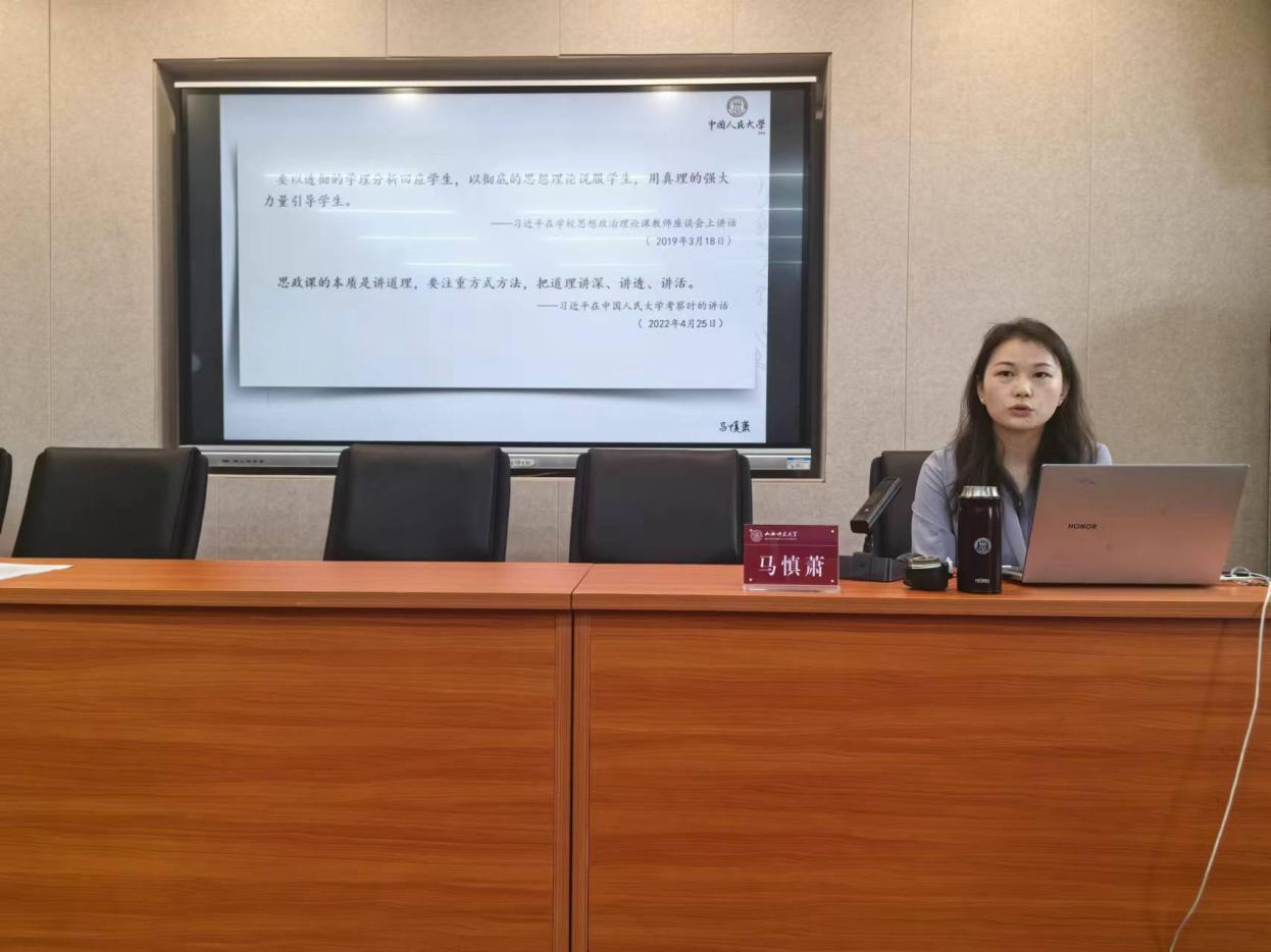 首先,马慎萧代表中国人民大学PP电子游戏网站向PP电子赠送精美纪念礼品。其次,马老师从学识积累、回应问题、教学设计等维度对思政课如何讲道理进行了系统阐释,结合原理课“资本主义经济金融化”“三问马克思主义”专题进行示范教学,分享了在教学备赛方面的经验心得。最后,与会教师围绕原理课教学研究热点焦点问题与马老师进行了热烈讨论。