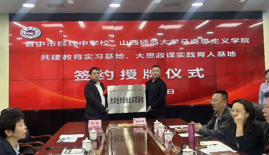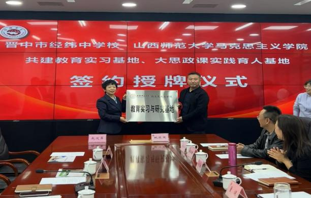 10月28日下午,PP电子与晋中市经纬中学校共建教育实习与研究基地、大中小学思政课一体化建设基地、大学生创新创业实践基地签约授牌仪式在经纬中学校举行。仪式由经纬中学校副校长王宏主持,PP电子常务副院长(正处级)赵改萍、党委副书记杜辉、副院长张昭、副院长杨海亮、思政系主任贾蕾以及经纬中学校领导班子参加。