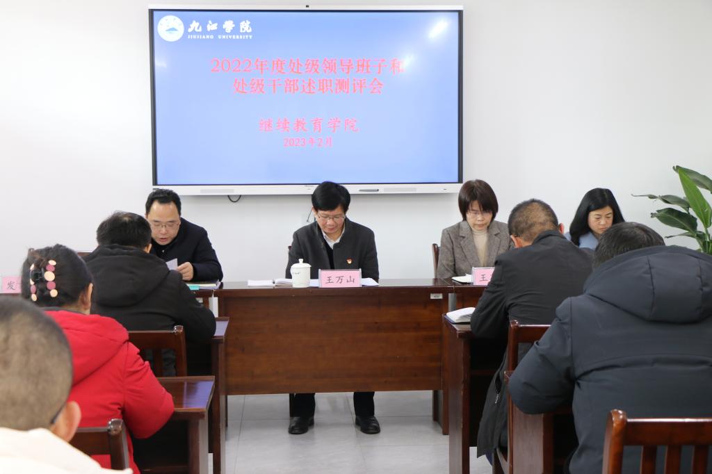 王万山认真听取了学院党政班子的工作总结和处级干部个人的述职报告。他指出,2022年学院领导班子在国家继续教育政策发生重大调整的情况下,团结协作、开拓进取,不断调整办学思路,制定了有效应对措施,在规范管理的同时,稳定了办学规模,有效防范了各类风险,各项工作任务圆满完成。