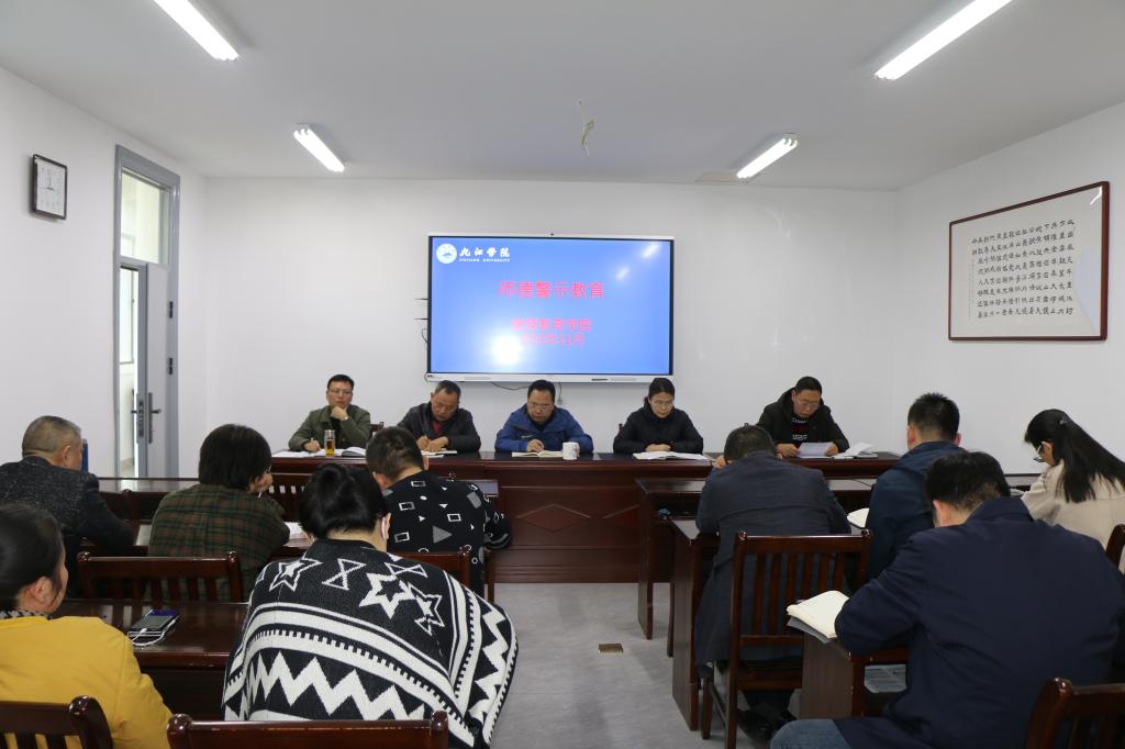 副院长何祥勇通报了教育部公开曝光第十三批7起违反教师职业行为十项准则典型案例;院党委副书记卢小澍传达学校文明创建工作调度会有关精神。