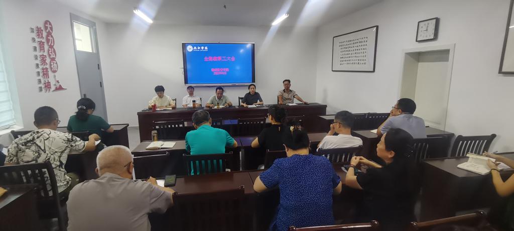 8月31日上午,beat365召开新学期全院教职工大会,院党委副书记胡洁主持会议。