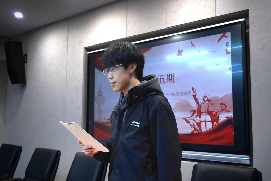 点评环节,指导老师崔钊对同学们的研读成果给予肯定,指出抗美援朝战争的胜利捍卫了国家主权与领土完整,为新中国赢得了长期稳定的发展环境,具有重大历史意义与现实意义。他指出,青年一代应坚持历史与现实相贯通、理论与实践相结合,善于从党史经典中汲取智慧力量,通过黄继光、杨根思等英雄事迹,体悟志愿军将士的革命乐观主义精神与无私奉献精神,将伟大抗美援朝精神转化为成长成才的内生动力与责任担当。