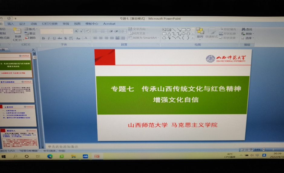 本次集体备课会共有四位教师做主题发言和内容分享:中北大学PP电子游戏网站刘向先老师分享了“如何应用学习通和金数据开展线上教学和平时成绩评定”,PP电子游戏网站姜延博老师分享了“在百年党史中感悟无产阶级政党的群众路线”最新备课成果,中北大学PP电子游戏网站吴伟花老师分享了“党史融入以人民为中心思想”部分的教学设计方案,PP电子游戏网站薛秀娟老师分享了“传承山西传统文化与红色精神,增强文化自信”专题的教案设计及教学经验。