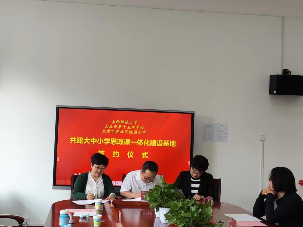 PP电子PP电子游戏网站党委书记王银、党委副书记孙学虎、副院长赵改萍、副院长吉志强和“形势与政策”教研室主任王晓荣,太原市第十五中学校校长林玮、教学副校长贾晓琴、教务副主任贺强、教师代表贾坤,太原市迎泽区桃园小学校长韩晓华、教导副主任薛丹出席仪式。