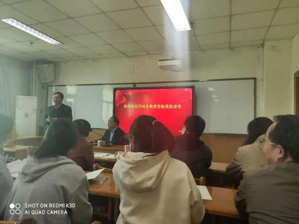 本次讲座由PP电子游戏网站院长贾绘泽主持,副院长赵笑蕾出席。数十名马院教师和众多马院研究生到场聆听,讲座现场座无虚席。讲座过后,就高校党建相关问题,邓教授与“红色引擎”教工党支部部分教师代表进行了亲切的交谈。