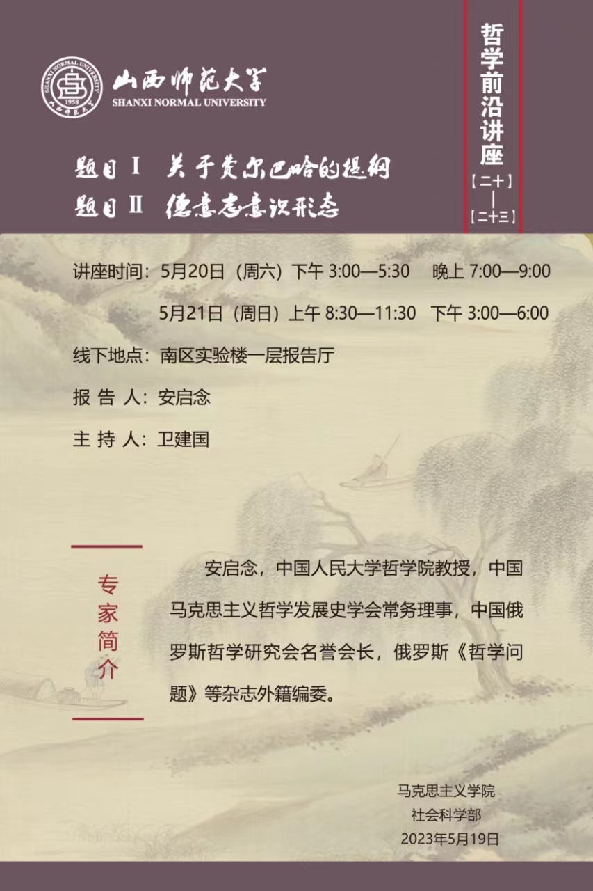 讲座预告 | 2023.5.20—21 安启念 教授 《关于费尔巴哈的提纲》、《德意志意识形态》