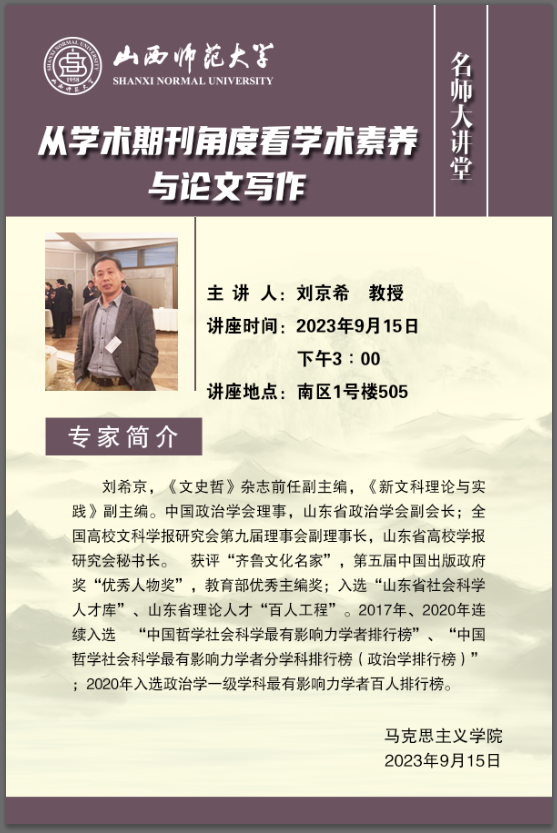 2023.9.15刘京希教授“从学术期刊角度看学术素养与论文写作”专题讲座
