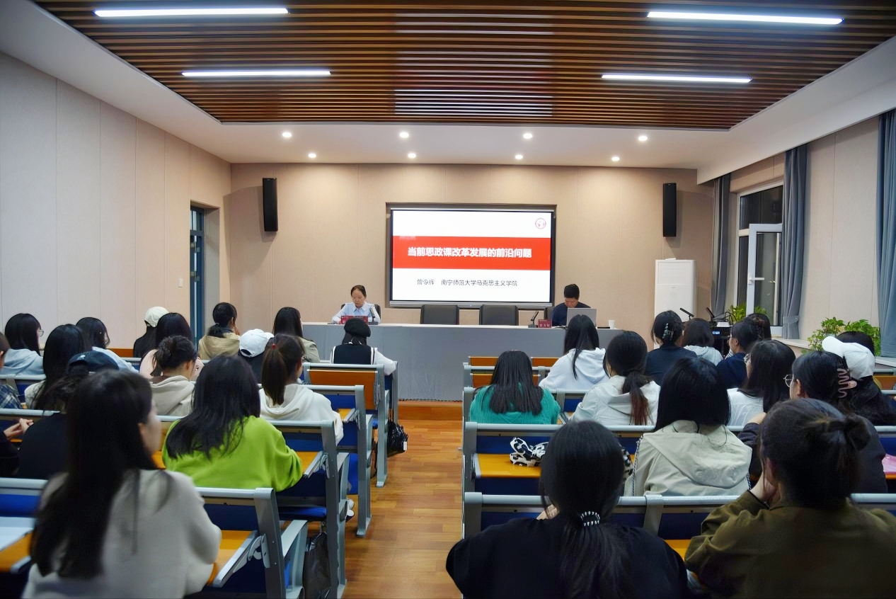 9月24日,PP电子邀请南宁师范大学PP电子游戏网站曾令辉教授为PP电子学生作关于“当前思政课改革的前沿问题”的专题报告。本次报告在南区1号教学楼505会议室举行,由副院长赵改萍(主持行政工作)主持,2023级马克思主义理论专业硕士研究生参加此次报告会。
