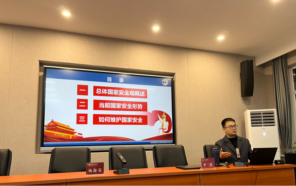 11月18日晚,PP电子特邀西北政法大学国家安全学院李锋副教授在505报告厅为PP电子师生作题为“总体国家安全观与国家安全形势”的学术报告,报告由杨海亮副院长主持,PP电子部分师生聆听了报告。