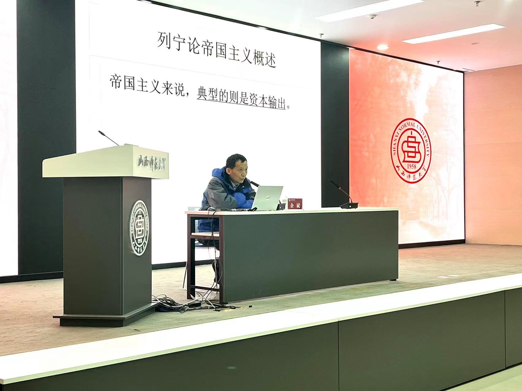 报告中,余教授主要围绕“列宁论帝国主义回顾”“新帝国主义的出现”“新帝国主义的旧特征”“新帝国主义的白条输出” “新帝国主义的知识租权” “新帝国主义的碳贡赋”六个方面展开论述。讲座最后,余教授与同学们进行了现场互动并答疑。