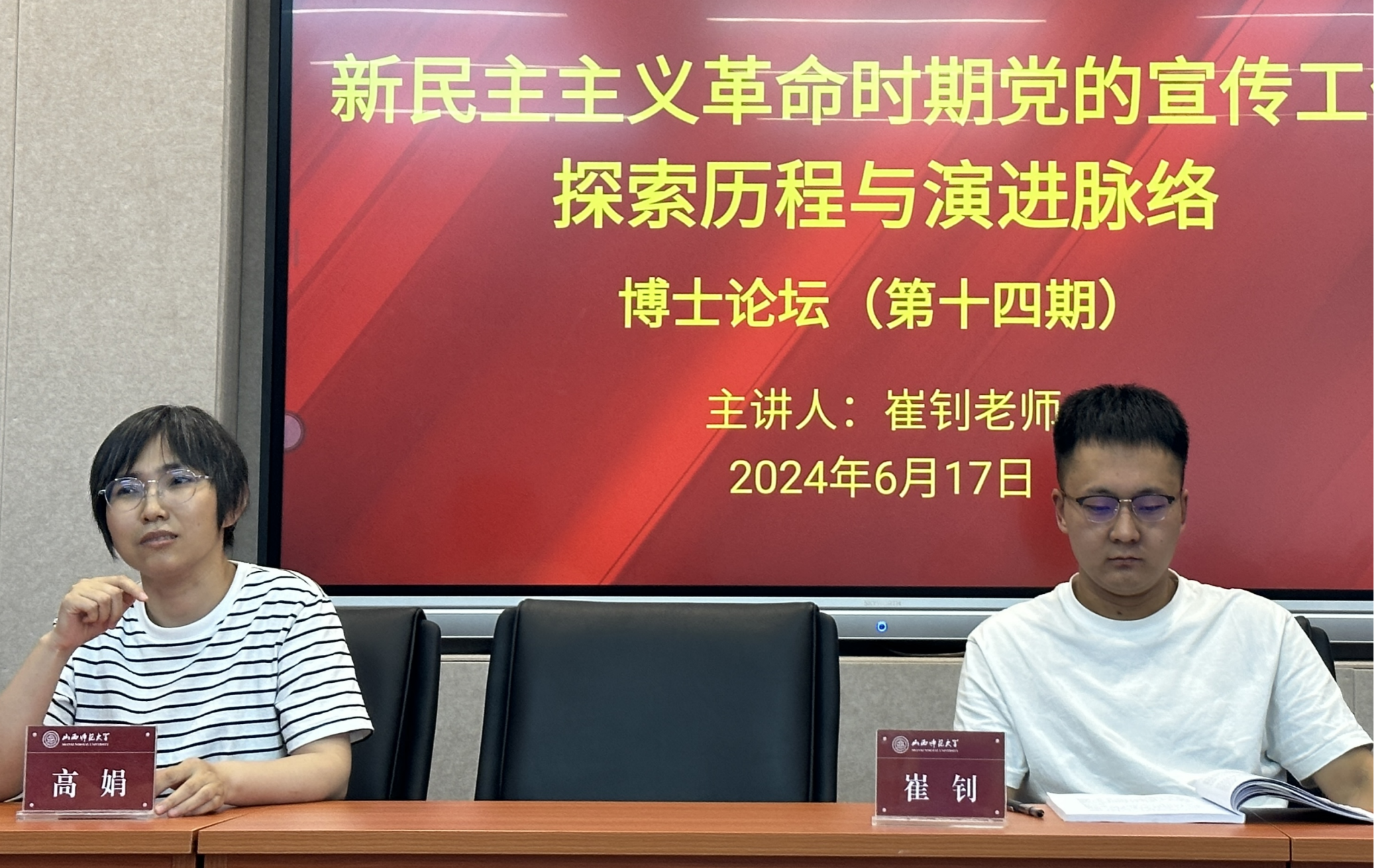 其次,崔钊老师作了题为《新民主主义革命时期党的宣传工作探索历程与演进脉络》的报告。第一,他从中国共产党成立初期、大革命时期、土地革命时期、抗日战争时期和解放战争时期五个历史节点系统梳理了党的宣传工作的萌芽、发展和成熟过程,并论述了党的宣传工作取得重大成就的原因和存在的不足,强调党的宣传工作的成功开展对新民主主义革命的伟大胜利有着不可替代的重要作用。