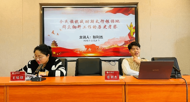 张利杰作了题为《全民族抗战时期太行根据地群众锄奸工作的历史考察》的报告,介绍了论文的创作逻辑。他提出,论文选题需满足可驾驭性、新颖性及亮点三重标准,必须系统化、精细化整理史料与文献,进行大量输入与精细研读,进而构建可随时调用的核心文献基础数据知识库,以确保论据的坚实性与论文逻辑的严密性。