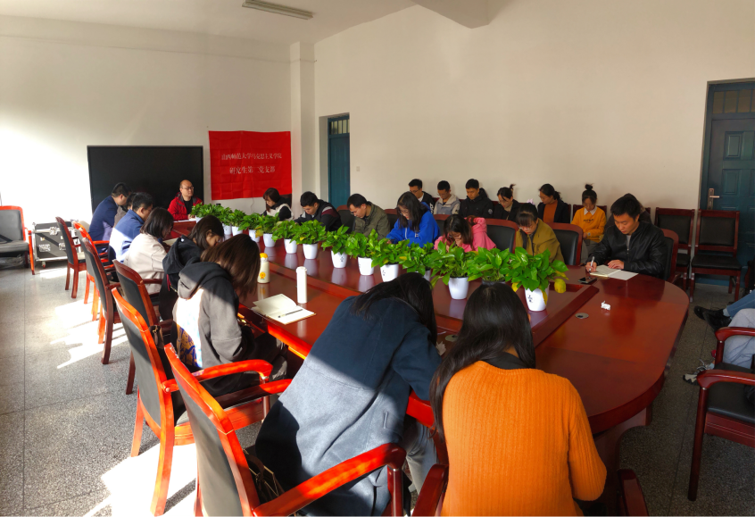 2021年10月27日上午,PP电子游戏网站研究生第二党支部在1号教学楼506办公室召开支部大会。杨海亮书记主持会议,支部全体党员参加会议。