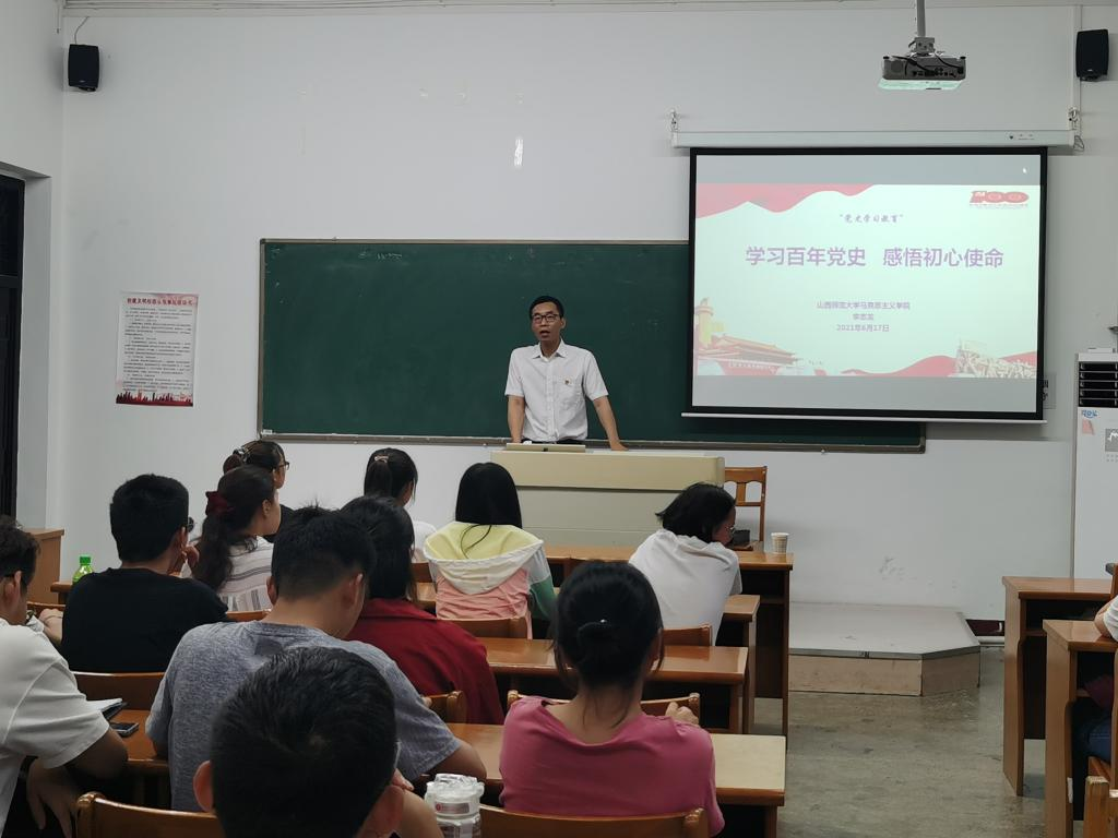 “守正创新”教工党支部坚持立足实际,充分发挥专业优势,联合历史与旅游学院本科生党支部和学生会开展理论宣讲。2021年6月17日晚7点半,支部宣传委员李志龙为历史与旅游学院同学上了一堂“学习百年党史 感悟初心使命”的党史教育课。他以青年视角聚焦百年党史,引导青年大学生学党史、强信念、跟党走,从而坚定理想信念,肩负起时代使命与责任担当,在学习、生活中发挥好先锋模范作用。