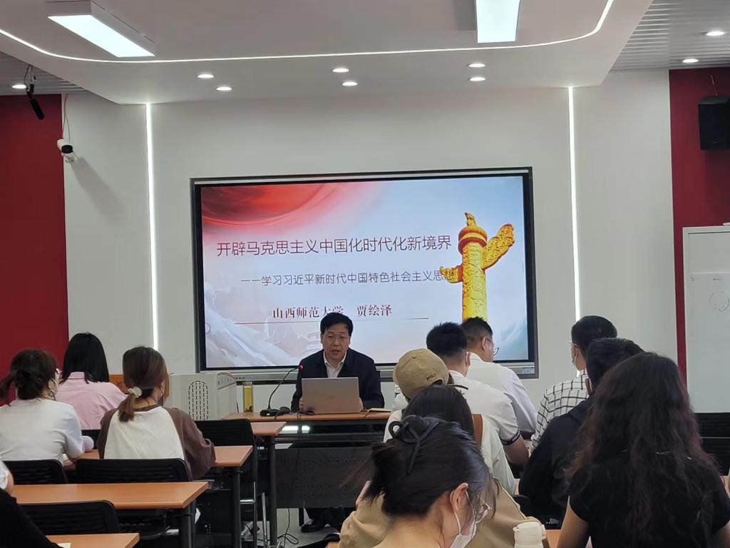 贾校长以“开辟马克思主义中国化时代化新境界——学习习近平新时代中国特色社会主义思想”为主题,从解决基本概念问题导入,对马克思主义中国化、马克思主义时代化、马克思主义中国化时代化的内在逻辑与历史主动进程进行理论阐释论析。