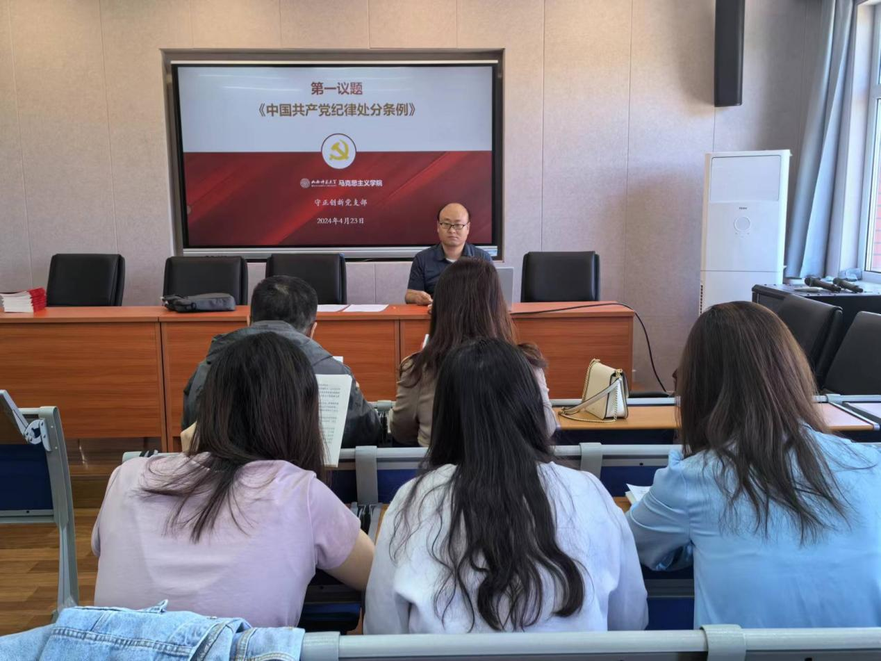 支部书记杨海亮同志传达了学校、学院党纪学习教育动员部署会议精神,宣读了《PP电子游戏网站党委党纪学习教育工作方案》,支部党员轮流逐字逐条学习了《中国共产党纪律处分条例》总则部分。围绕如何认识党的纪律建设在推动解决大党独有难题、健全全面从严治党体系中的地位作用进行交流研讨。