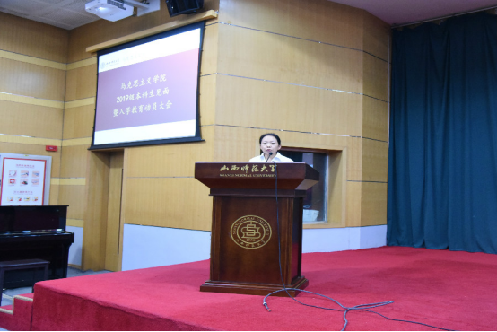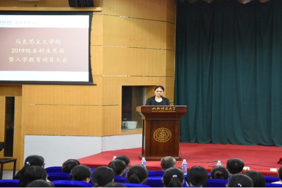 会议伊始,庄严肃穆的国歌响起,全体师生起立高唱国歌。院长贾绘泽老师向2019级全体新生致欢迎辞,介绍了PP电子游戏网站雄厚的师资力量以及良好的学习环境,并对入学新生提出了几点切实有效的学习建议;之后,副院长赵改萍老师详细介绍了专业人才培养方案及毕业要求,为168名新生勾画了四年大学生活的学习蓝图;教师代表本志红老师向新生介绍了大学生活的特点,分享了在大学学习的经验,从而帮助2019级新生更好的适应大学生活;随后,思想政治教育专业1901班魏莲佳同学作为新生代表发言,她表示将会在未来的大学生活中努力学习,严于律己,最后成就自我。