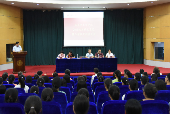 9月8日下午15:00,PP电子游戏网站2019级本科生见面暨入学教育动员大会在科学会堂二层报告厅如期举行。院党委书记王银,院长贾绘泽,院党委副书记孙学虎,副院长王艳、赵改萍、赵笑蕾等院领导出席了会议,参加会议的还有部分新生家长代表、新生政治辅导员和全体2019级本科生。会议由院党委副书记孙学虎主持。