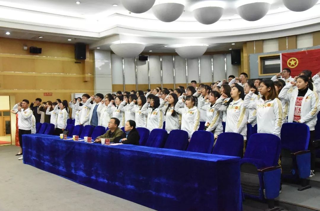 随后,会议第一项,全体人员起立,共唱国歌。会议第二项,由主持人张瑞琴老师讲解成班目的、注意事项及考核标准,明确本次会议内容。在经过神圣的授旗仪式后,全体成员起立庄严宣誓,忆自己的初心与坚守。接着,由学生代表白沛林上台发言。他表示,全体青马学员会认真对待青马班的培训,把握好提升自己的机会,争做中国特色社会主义事业的合格建设者与可靠接班人。最后,全体青马学员起立,共唱团歌。
