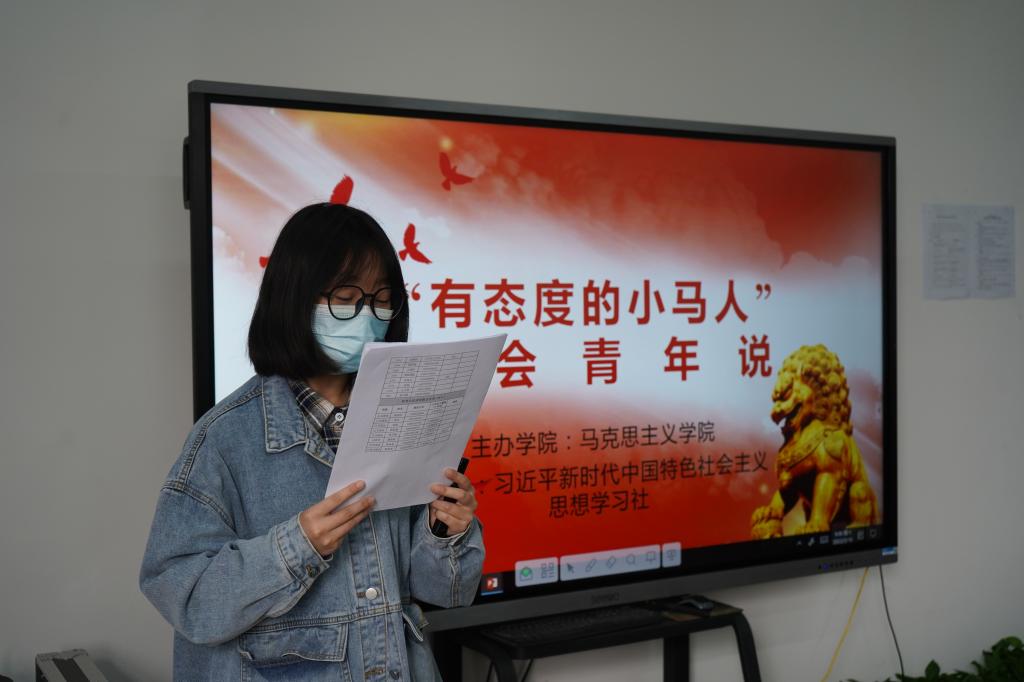 活动最后,张瑞琴老师高度评价了此次学习研讨会。她表示,这既是一次两会精神的理论学习和思想交锋,又是一次理论联系实际的实践活动。张老师告诉同学们,要观天下大事,知民生百态,心怀“国之大者”,指点江山,激扬文字,做有态度的小马人!