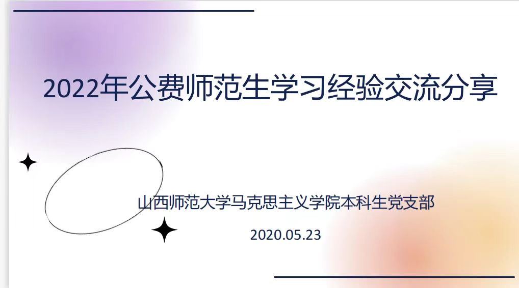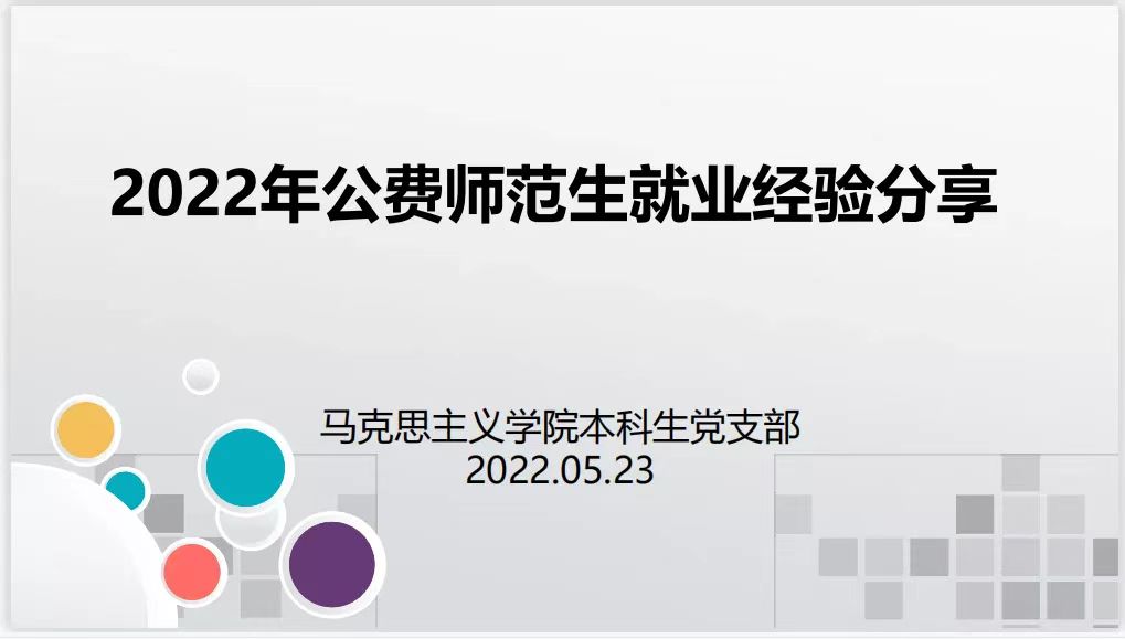 5月23日下午,PP电子团委和本科生党支部于南区一号楼506会议室共同举办了2022年公费师范生学习经验和就业经验交流分享会。本科生党支部书记张玉婷、组织委员李丽丽、宣传委员张瑞琴,以及本科生党支部全体党员、公费师范生分别于线上线下共同参加了会议。会议由1801班党琪同学主持。